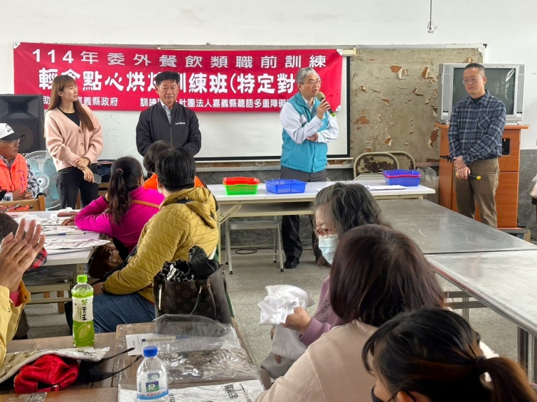今(10)日上午「輕食點心烘焙訓練班(特定對象)」於社團法人嘉義縣聽語多重障礙福利協進會正式開訓,勞青處副處長林俊傑到場鼓勵學員珍惜學習機會,透過專業培訓提升自我價值,為未來就業做好準備。