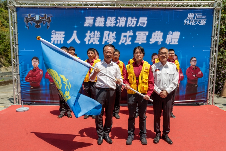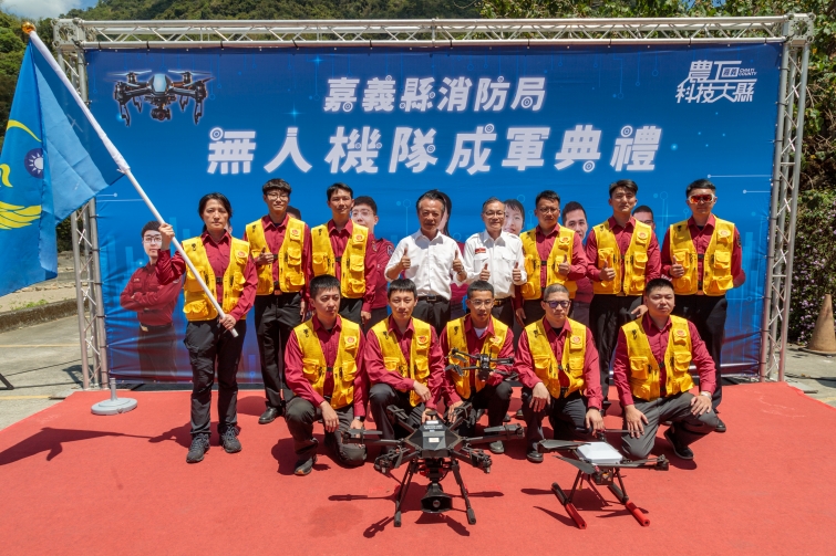 嘉義縣消防局無人機隊正式成立,今27日上午在番路鄉天長地久橋舉行成軍典禮,投入30名人員,由縣長翁章梁親自授旗,現場展示消防無人機等新式科技救災器材,並實際操演傳輸影像、偵查、熱顯像儀探測等功能,未來將結合亞洲無人機AI創新應用研發中心運作,提升消防救援、災害應變的能力。