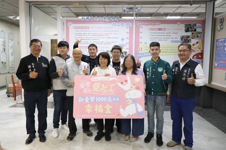 在每年3月的第三個星期二,全球共同慶祝國際社工日,而今(2)日則是我國的社工日,這一天不僅是對社會工作人員的感謝,也是讓大眾更加瞭解社會工作專業的重要時刻。嘉義市政府社會處特別規劃一系列精彩活動,透過主題策展讓民眾可以更認識社工專業和日常,黃敏惠市長更代表市府頒發加碼「1000元幸福金」給嘉義市全體社工人員,由嘉義市社會工作師公會代表接受,向辛勞付出的社工夥伴致上最深的感謝,並由衷祝福「社工日快樂」!
