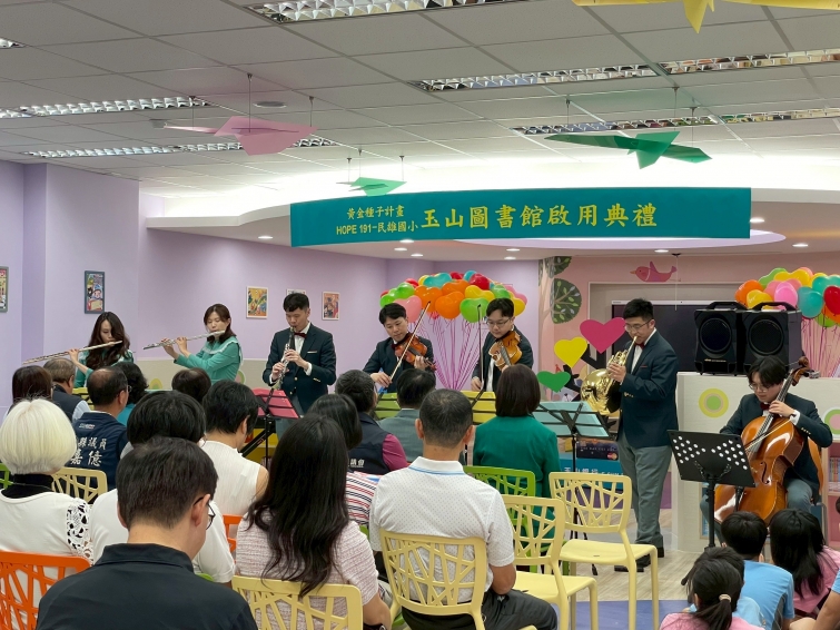 玉山室內樂團為典禮揭開序幕,接著由民雄國小優等英文團隊帶來英語讀者劇場表演,直笛隊也演奏優美樂音,活動尾聲安排圖書館導覽,展示全新的閱讀空間與數位資源設施。