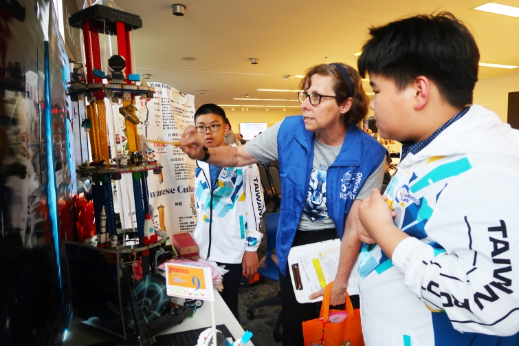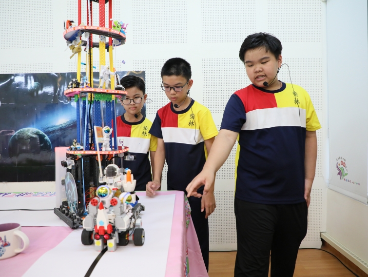 指導教師張益嘉主任說明,今年世界賽的主題為「穿越宇宙」(Across the Universe),學生用「星際策略聯盟 環保永續太空」為概念,結合SDGs指標設計解決太空垃圾問題的機器人,獲得評審肯定。