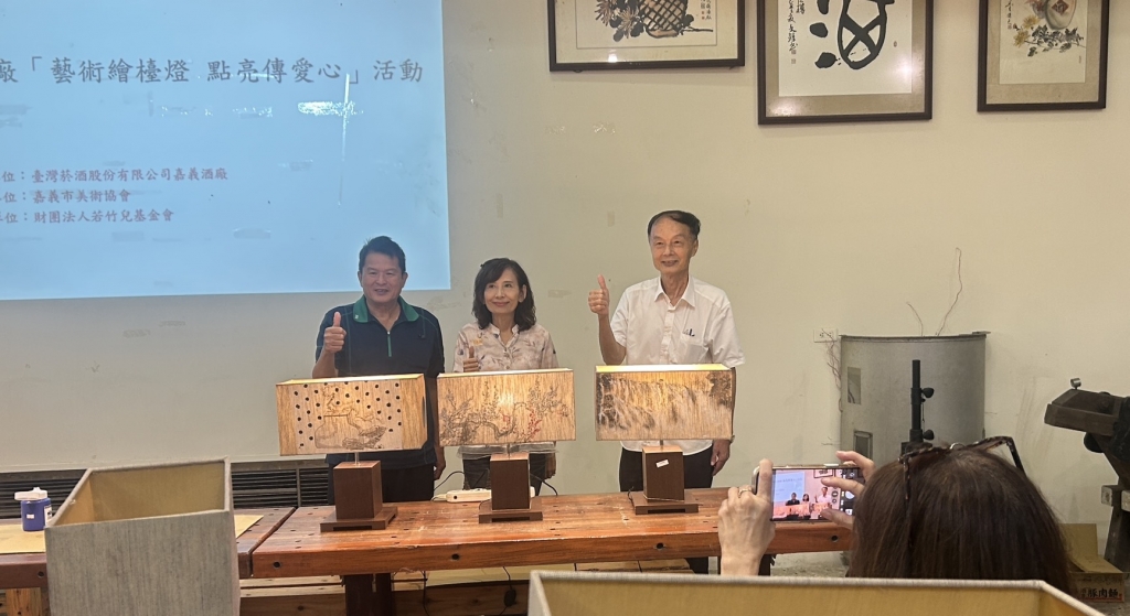 台灣菸酒股份有限公司嘉義酒廠「藝術繪檯燈 點亮傳愛心」活動,在(114)年9月20日(星期六)上午9時至中午12時於嘉義酒廠玉山高粱酒文化園區舉辦,活動由嘉義酒廠提供檯燈、邀請嘉義市美術協會20位藝術家彩繪,攜手為若竹兒教育基金會籌措營運基金。在後疫情時代,經濟動能疲軟,無論企業或個人都已自顧不暇,遑論,有餘力去幫助弱勢族群,許多團體正處於經濟寒冬。適巧在一次活動中,嘉義酒廠提及有些檯燈可運用,嘉義市美術協會黃寶賢理事長慷慨允諾,號召在地藝術家為檯燈彩繪,成為若竹兒義賣品,才有「藝術繪檯燈 點亮傳愛心」活動的誕生。