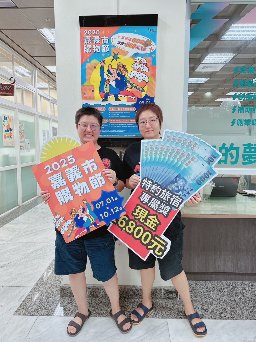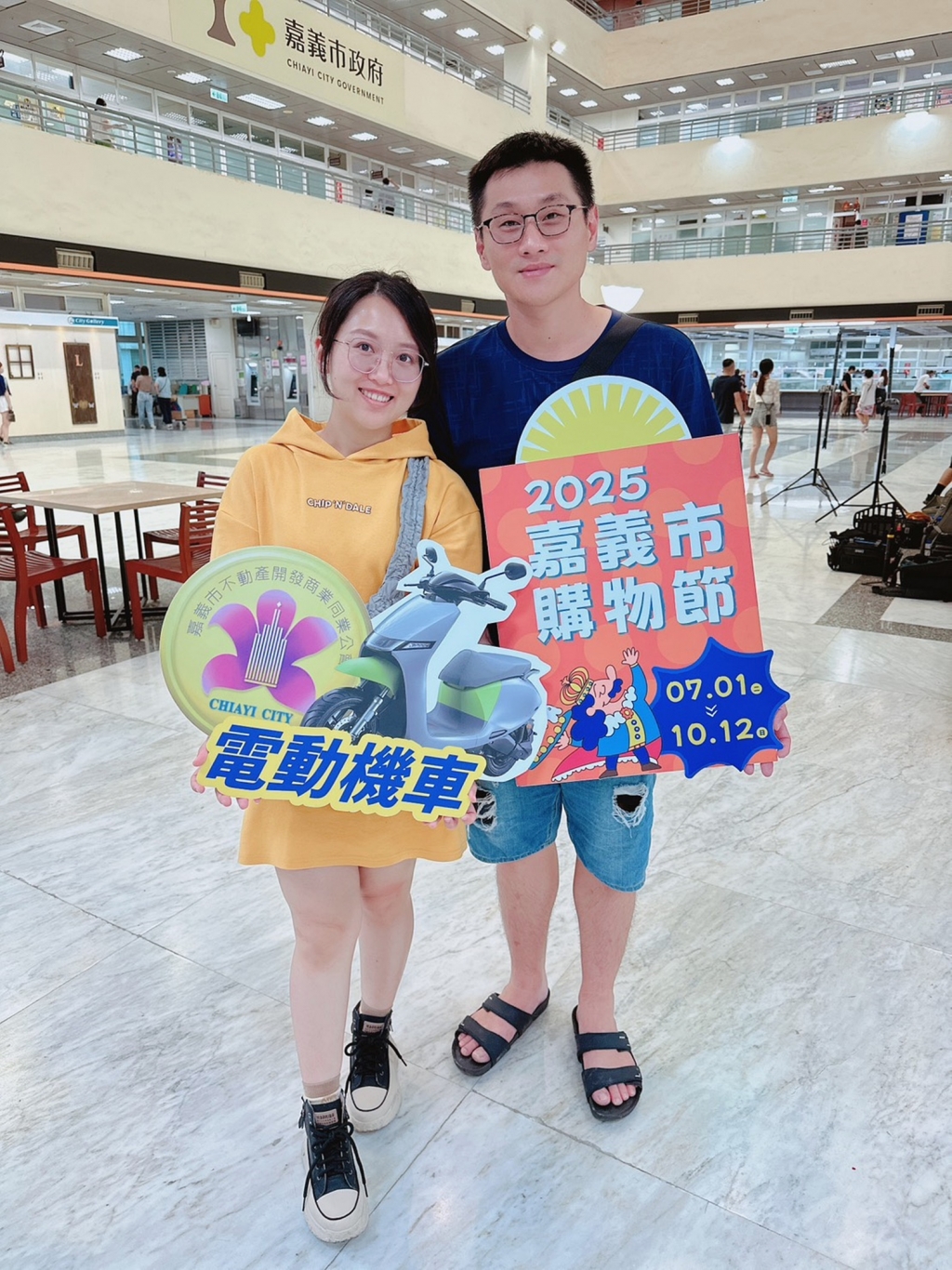 加上今年「嘉義市不動產建築商業同業公會」贊助10臺電動機車,已於10月1日週週抽直播中抽出5位幸運得主,其中一位得獎者鄭小姐除了抽中電動機車外,還獲得嘉義市政府文化局額外加碼的「兩天一夜木都小旅行遊程」!她開心表示,第一次中獎就已經相當意外,沒想到在最後倒數階段又抽中光陽電動機車,直呼「手氣超旺、來嘉義市購物真好運」!