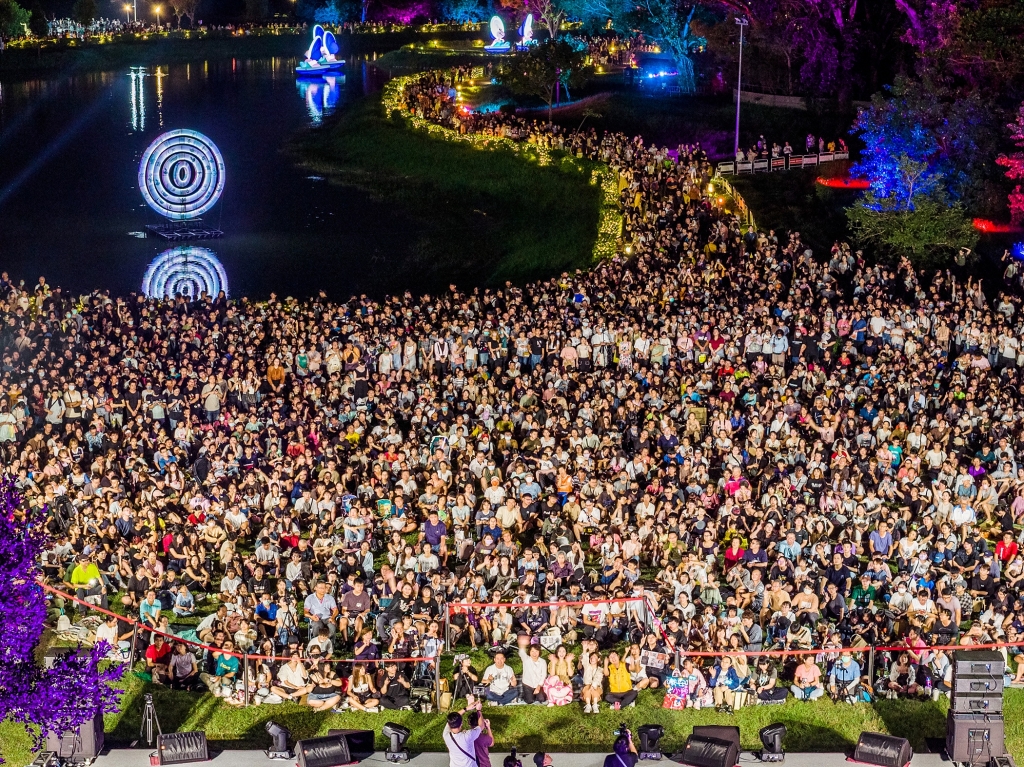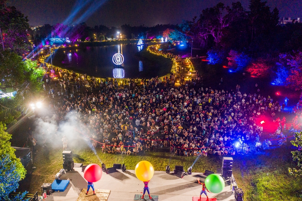 展期進入最後週末,北香湖持續湧入觀賞人潮,18日晚間舉行的閉幕演唱會邀請梁文音、張語噥與陳勢安接力開唱,現場燈海閃爍、氣氛熱烈;隔日壓軸的「幻光特技馬戲秀」結合光影、音樂與肢體演出,為活動畫下精采句點。連日人潮也帶動周邊商圈與市集買氣,攤商笑稱「忙到來不及補貨」,光織影舞更從觀光活動升級為帶動地方經濟的城市品牌。