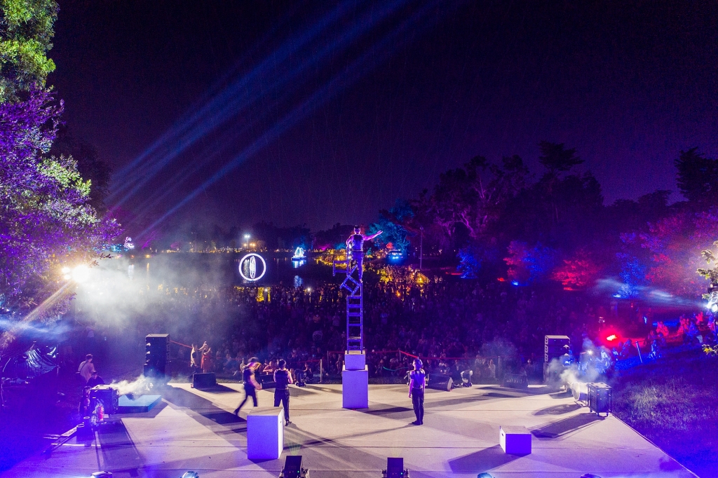 與歷屆不同的是,今年的光織影舞打破僅限夜間觀賞的模式。策展團隊以「白天拍照導向、夜晚光影體驗」為策劃主軸,讓展區裝置在自然光與燈影之間呈現雙重樣貌。白天,作品融入湖景與植栽,強調結構與材質的細節;夜晚則透過光影變化與聲音互動,轉化為沉浸式的視覺體驗。這項設計讓遊客白天與夜晚都能體驗不同風貌,成功擴大來訪時段,成為人次突破百萬的重要關鍵。