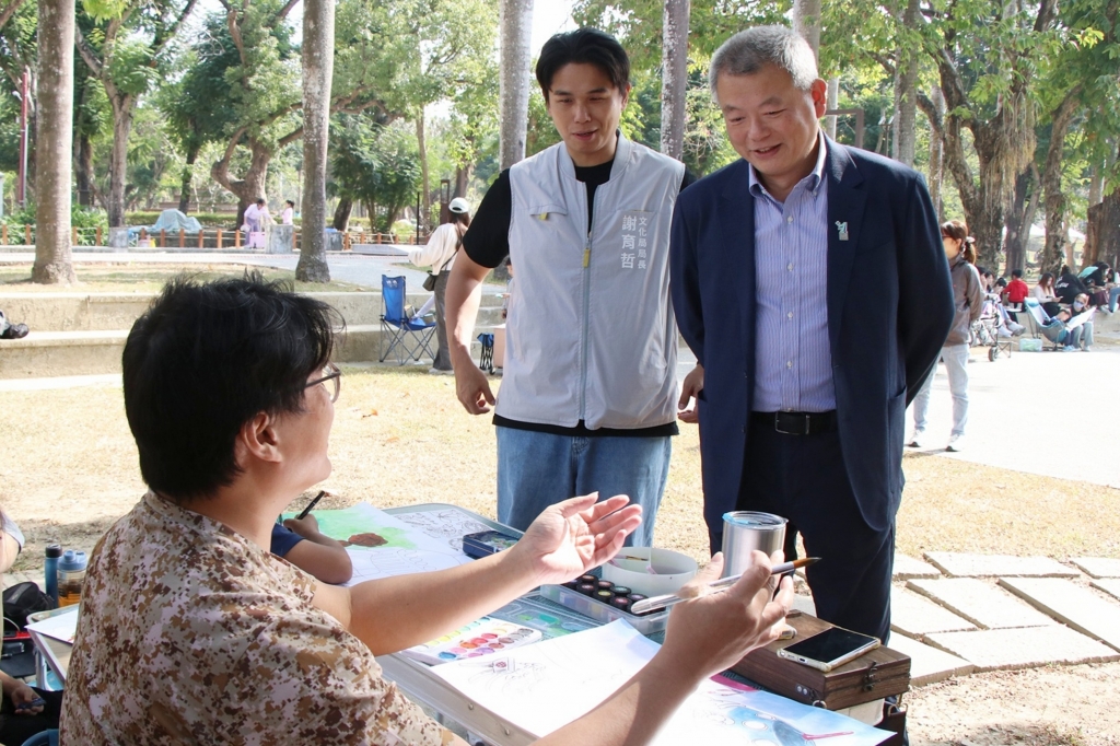 謝育哲局長進一步指出,今年以「嘉義公園」為主題,特別邀請嘉義在地藝術家王德合老師蒞臨指導,以豐富的教學經驗陪伴市民親近藝術,並以自身創作啟發大家的觀察力與表現力,讓嘉義的在地藝術能量得以持續累積與傳承。