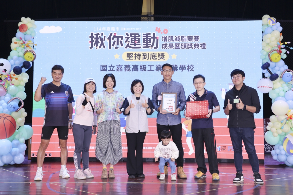 嘉義市政府衛生局連續4年舉辦「揪你運動」增肌減脂競賽,昨(29)日於民族國小活動中心舉辦頒獎活動,46組參賽團隊齊聚分享今年的運動成果與健康蛻變。活動由嘉義高工街舞社以充滿活力的舞蹈揭開序幕,接續播放參賽歷程記錄影片,喚起參賽者再次感受團隊凝聚與自我突破的感動。今年整體成績亮眼,總減重達958公斤,展現職場揪團運動的驚人力量。