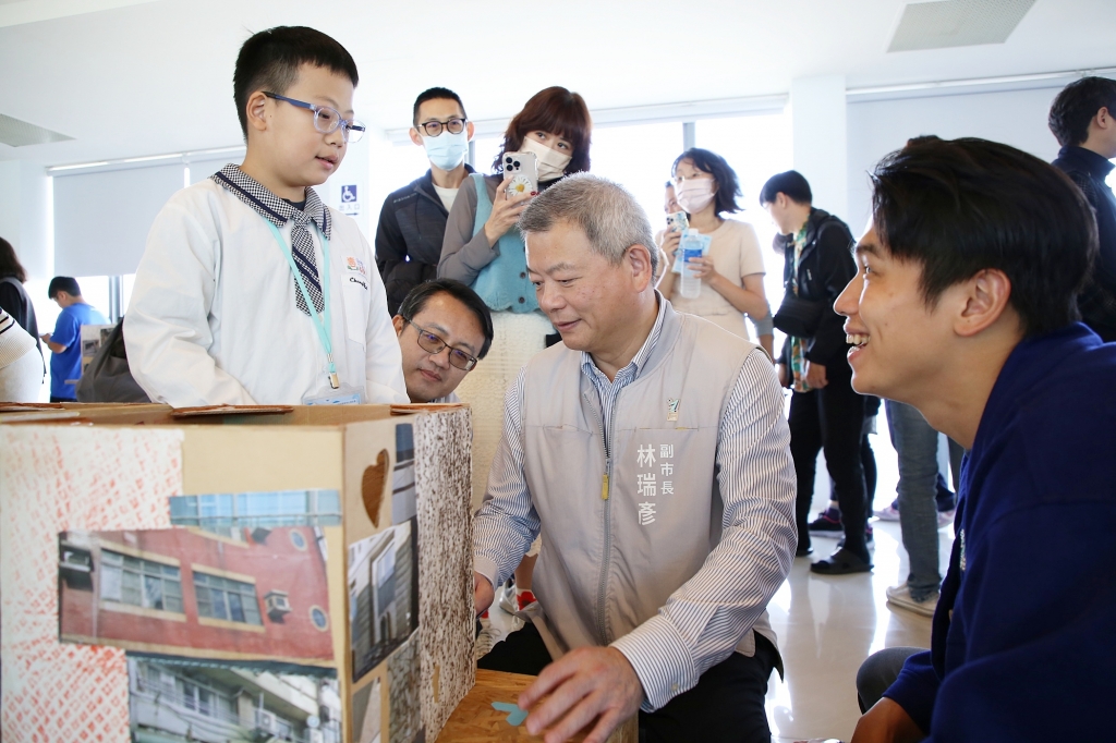 林瑞彥副市長表示,看到今天的成果展,心裡真的非常感動,也羨慕同學有這麼多優秀且熱情的藝術家陪伴創作、啟發視野。這也正是黃敏惠市長長期努力推動的理念──希望透過教育,讓不同領域的學習向下扎根。因為唯有把教育扎實做好,我們才能真正面對並解決問題,讓社會更加祥和,也讓城市更富有人文與藝術氣息。