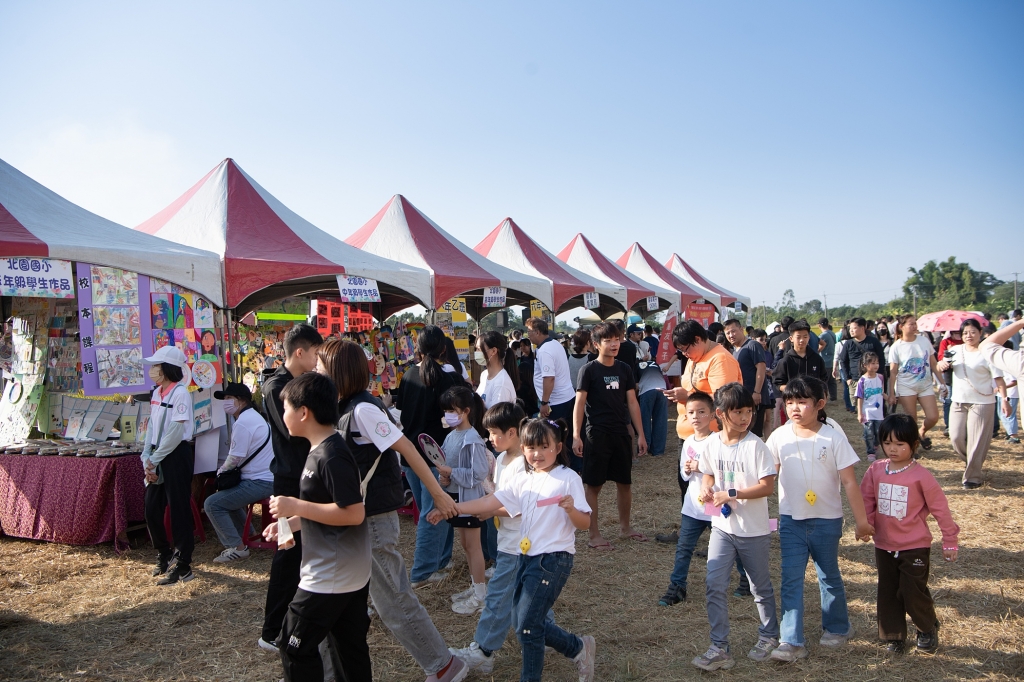 嘉義市北園國小今(6)日與北園國中、北園附幼在金黃稻田之中聯合舉辦第六屆「稻香藝田音樂祭」,打造「以天地為幕、以稻浪為景」的戶外藝術舞台,並結合課程博覽會與文創市集,吸引大批親師生及社區居民共襄盛舉,為北園國小92週年校慶系列活動揭開序幕。嘉義市副市長林瑞彥代表黃敏惠市長到場為演出的孩子們送上鼓勵。