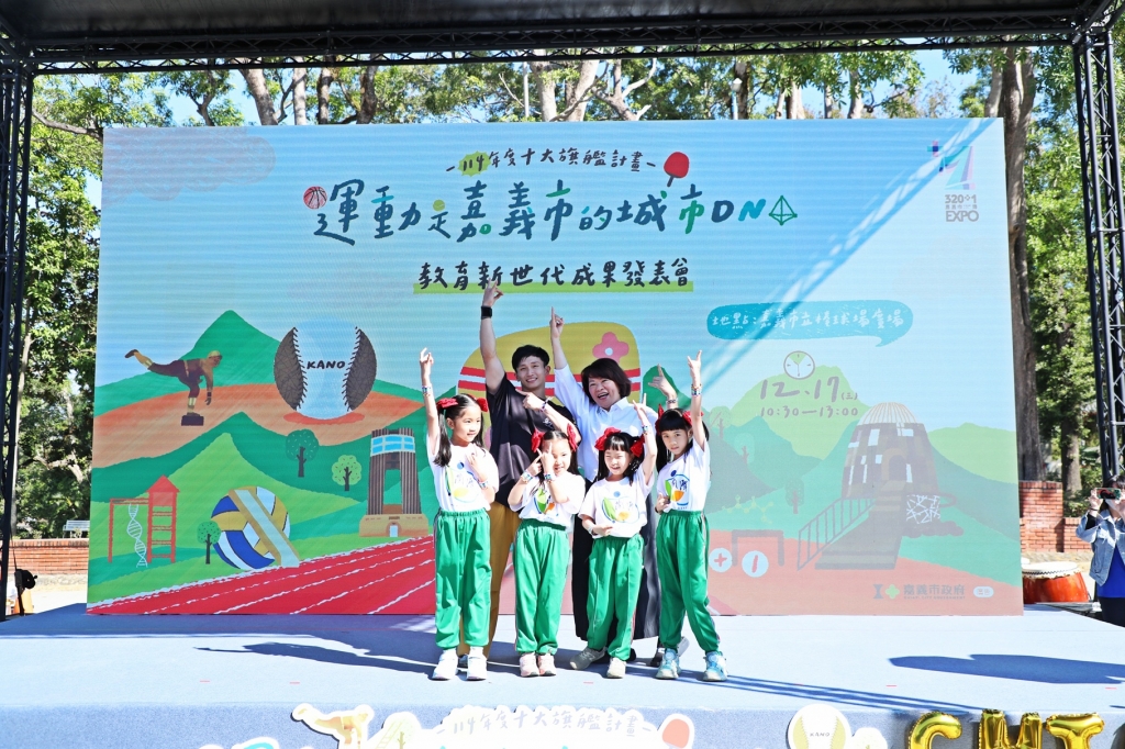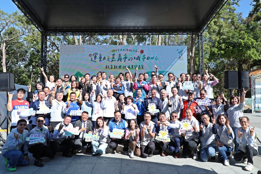 「114年度十大旗艦計畫教育新世代成果發表會」於今(17)日上午在嘉義市立棒球場前廣場熱鬧登場,黃敏惠市長出席成果發表會,更與現場學生一起跳健康操。本次活動以「運動是嘉義市的城市DNA」為主題,現場匯集學校單位、運動產業代表與民間團體,展現官產學三方攜手合作的能量,活動安排各項體育表演、體育成果影片欣賞、體育攤位展示,也特別邀請114年全國運金牌選手黃政嘉到場分享運動歷程,全面呈現嘉義市推動教育新世代與運動城市的亮眼成果。