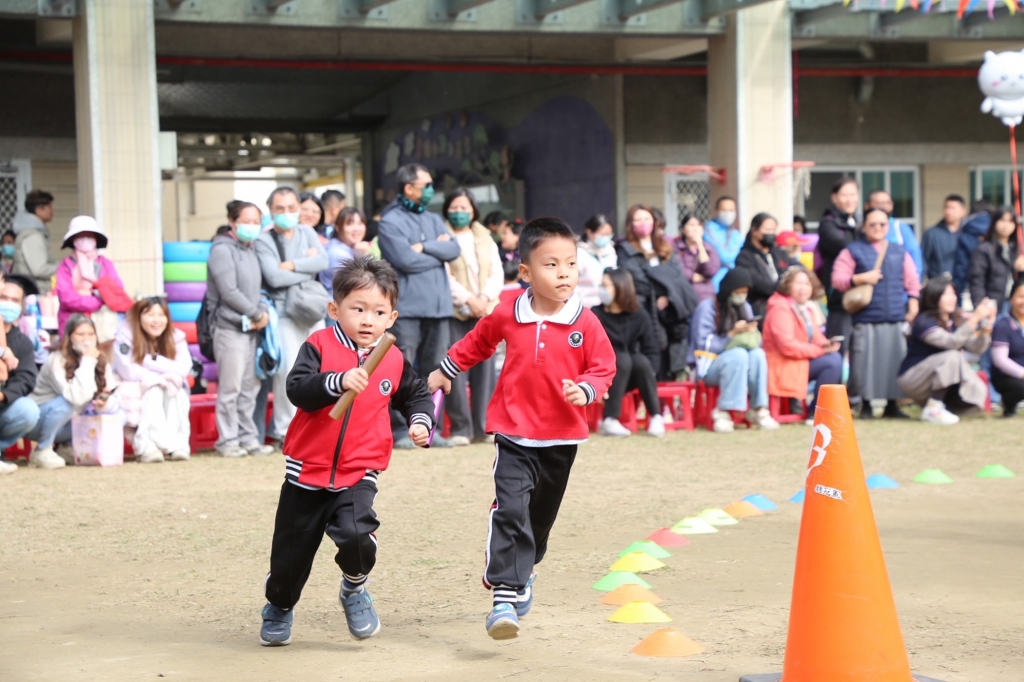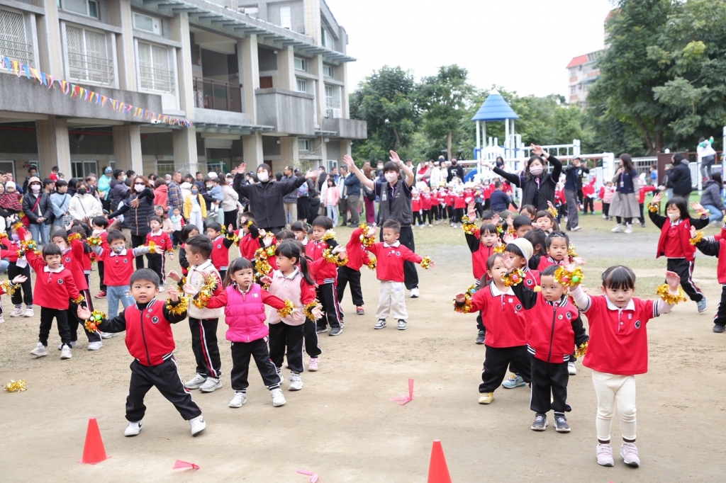園慶活動中亦規劃多項結合遊戲性與教育意涵的各班群親子趣味競賽,讓親師生在互動合作中共享歡樂時光。幼幼班「無限搬搬樂」透過簡單搬運動作培養動作協調與親子默契;小班「無限傳球趣」強調合作與專注力;中班「無限勇敢小火車」引導孩子在挑戰中學習勇敢與團隊精神;大班「馬到成功歡樂無限」則結合速度與策略,展現大班幼兒的成熟度與自信。現場笑聲與加油聲此起彼落,氣氛熱烈溫馨。