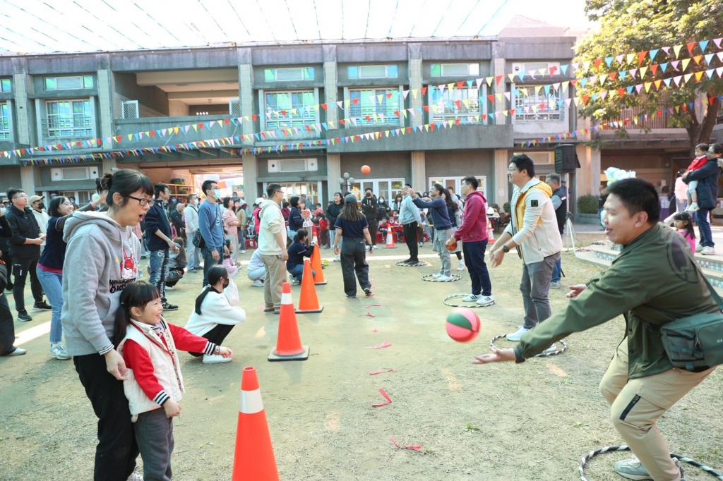 此外,親師聯賽「幸福拋接樂」也將活動推向高潮,透過拋接球的來回合作,象徵幸福的傳遞與連結,展現親師之間合作無礙、彼此信任的重要性。活動不僅拉近親師距離,也讓孩子在一旁看見大人以身作則、攜手合作的美好畫面,為園慶活動留下感動人心的回憶。