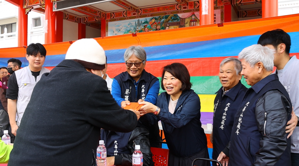 黃敏惠市長今日一早參與活動,並親手將冬令救濟物資、慰問金交予民眾。黃敏惠市長表示,公部門資源有限,民間力量卻是無限的,感謝九華山地藏庵歷年來的無私付出,幫助許多需要幫助的家庭,希望社會各界能夠繼續伸出援手,讓更多貧困家庭感受到溫暖,並帶動社會共同扶弱濟貧的善良風氣,讓弱勢家庭在新的一年感到溫馨與關懷。