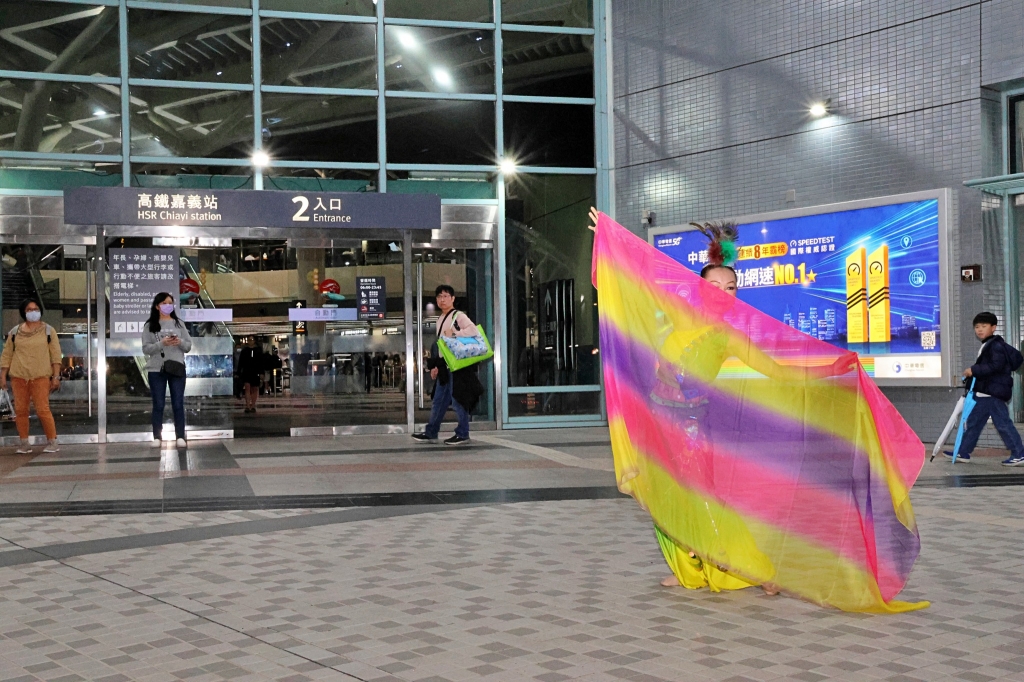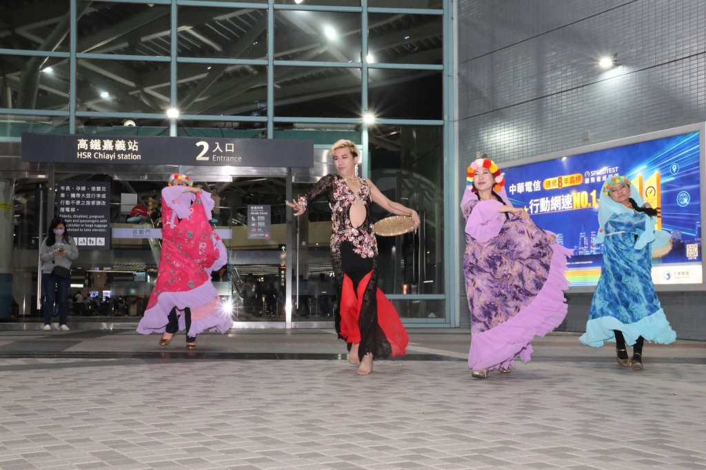 連假尾聲快閃終站來到「嘉義高鐵站」,邀請「外婆橋教育關懷協會」新住民壓軸演出在距離燈區最近之處,向南北往來的旅客傳遞燈會訊息,在踏上嘉義土地的第一時間,即感受這座城市的熱情與文化能量。