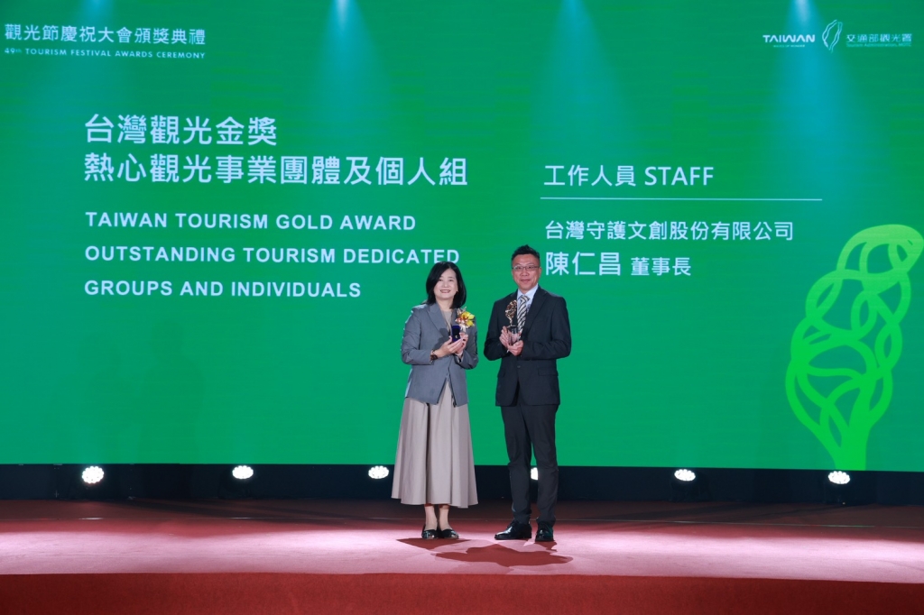 在個人獎項部分,台灣守護文創股份有限公司董事長陳仁昌榮獲「2026台灣觀光金獎—熱心觀光事業工作人員」。陳董事長秉持對鄉土的熱愛,投入井仔腳瓦盤鹽田的永續經營,將傳統曬鹽產業與現代觀光體驗深度結合。在他的帶領下,鹽田不僅獲得多項國際永續大獎,更成功打造出具備環境教育、美學價值與產業轉型的觀光品牌,為台灣濱海觀光產業注入創新生命力。