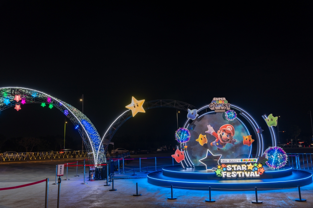 燈區規劃多處角色主題拍照點,包括耀西拍照點、碧姬公主星星拍照點及超級瑪利歐銀河拍照點。耀西拍照點可以看到耀西以不同顏色與姿態亮相,營造活潑繽紛的拍照空間;碧姬公主星星拍照點則透過閃耀的燈光效果與無敵星的拱形燈飾,呈現出明亮且夢幻的氛圍;超級瑪利歐銀河拍照點以宇宙與圓環燈光結構為背景延伸,帶出銀河冒險的魅力。