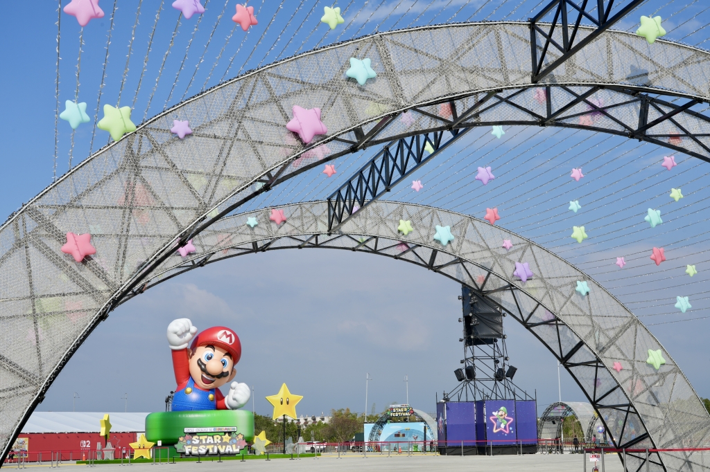 「GET THE STAR!超級瑪利歐主題燈區」作為本次星燦嘉年華的主燈,以高達 10公尺的瑪利歐造型亮相,搭配星星元素與燈光設計,成為燈區中最醒目的焦點。燈區開放時間平日14:00開始、週五及假日(含開燈日)10:00開始,白天呈現明亮的拍照場景;夜晚則配合星星造型燈飾與地面光影效果,讓民眾能從不同角度欣賞主燈的細節與樣貌。